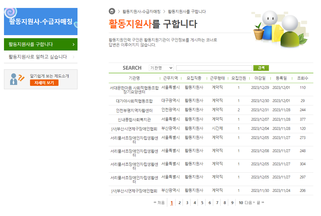활동지원사 구인정보 바로가기